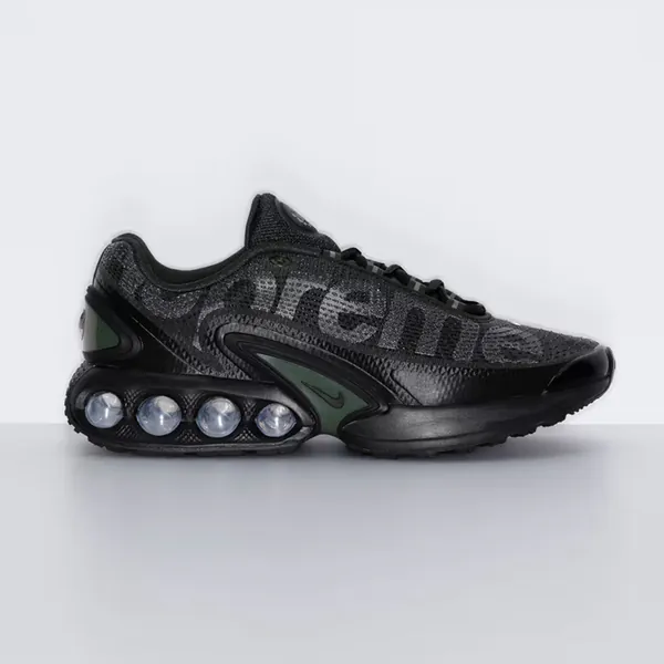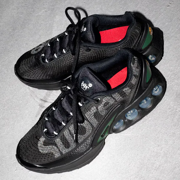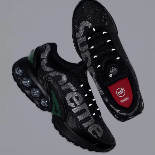 Noch sind es ein paar Tage bis zum großen Tag, doch wurden jetzt schon einige brandheiße Sneaker Releases geleaked, die an und um den großen Tag herum erscheinen sollen. Wie jedes Jahr, dürfen wir uns dabei sogar über eine völlig neue Silhouette freuen: Den Air Max "DN" Dynamic! Auch wenn die OG-Farben wohl erst im März erscheinen werden, erwartet uns die Silhouette bereits am 22. Februar im Rahmen einer Kollaboration mit Supreme New York. Mit einem düsteren Upper und großen Supreme-Brandings hat die gehypte Streetwear Brand der SIlhouette einen ganz besonderen Anstrich verpasst, welcher hervorragend auf der TN-artigen Silhouette herrüberkommt.